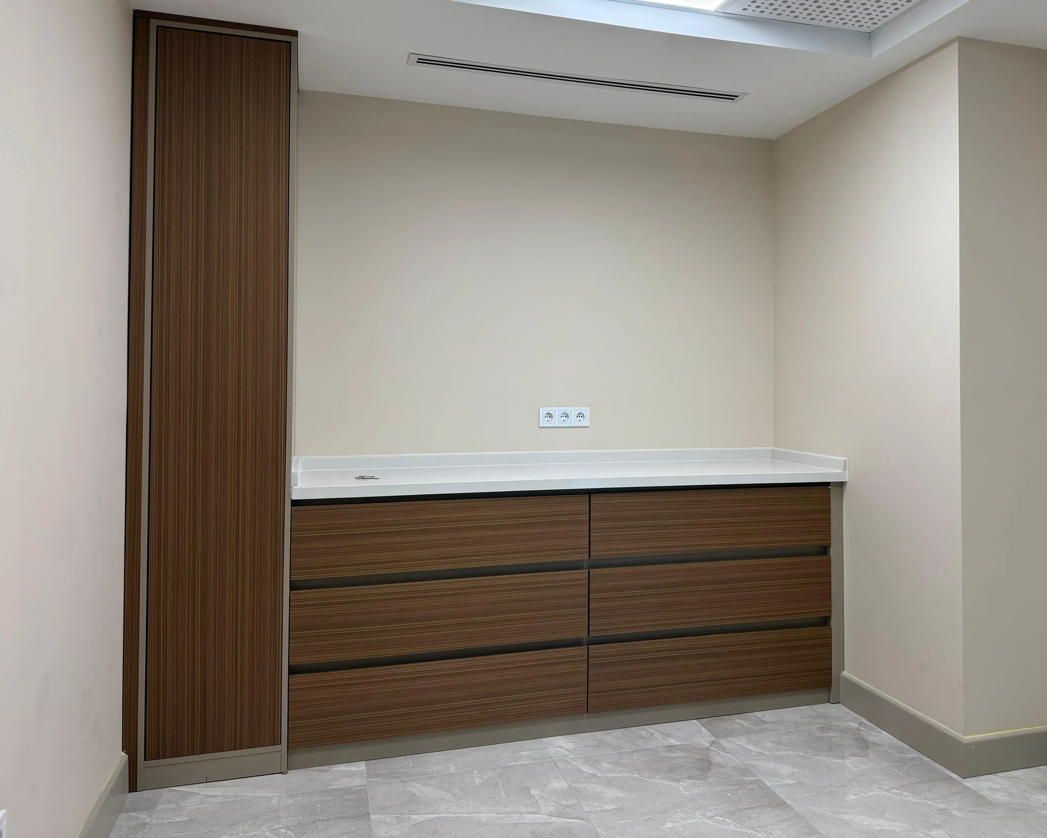 İlsan Mobilya olarak, Ankara’nın en prestijli bölgelerinden Çukurambar’da yer alan bu klinik projesinin iç mekan mobilya ve ahşap uygulama süreçlerini üstlenmiş bulunmaktayız. Sağlık sektörünün gerektirdiği yüksek hijyen standartlarını, hasta konforu ve modern estetikle harmanlayan çözümler sunuyoruz.