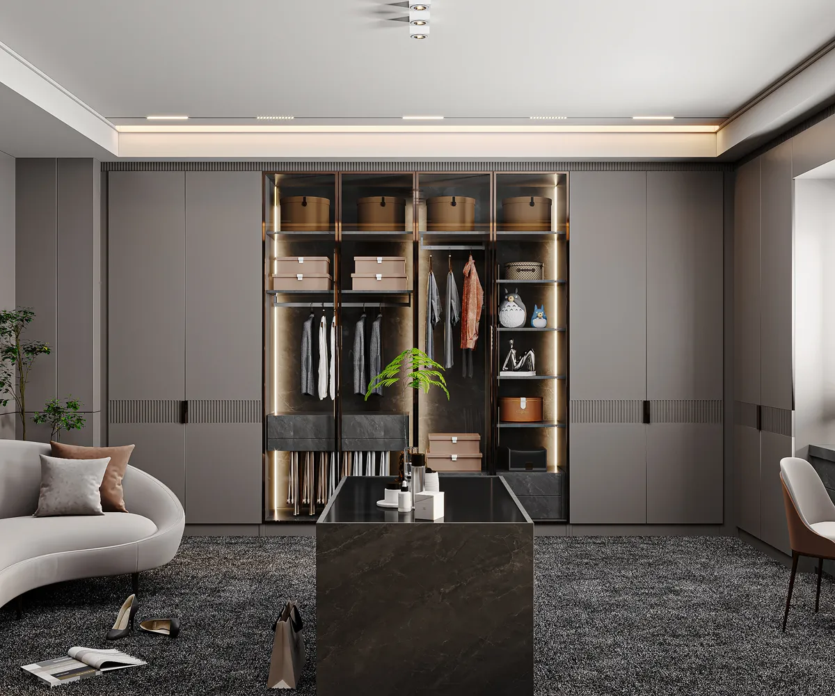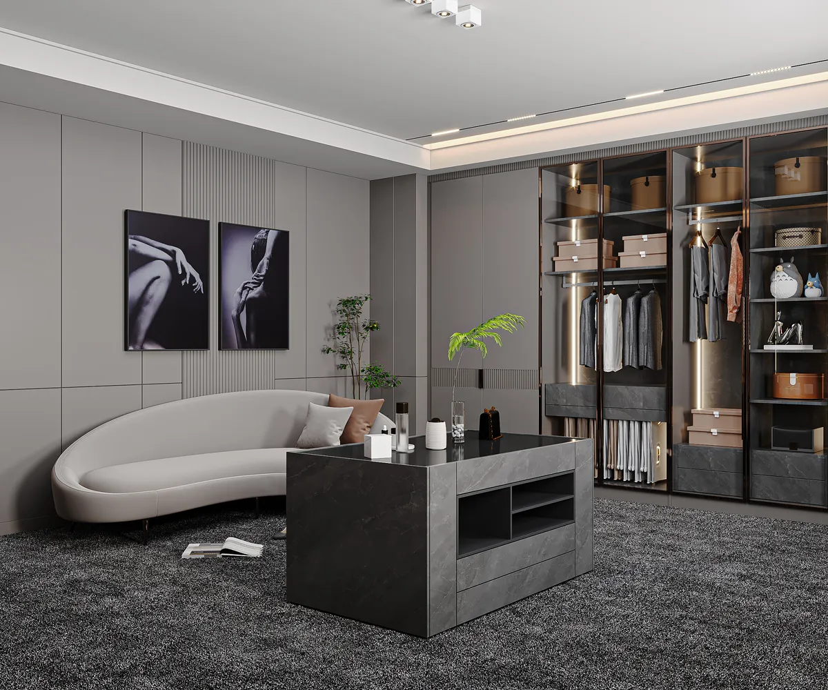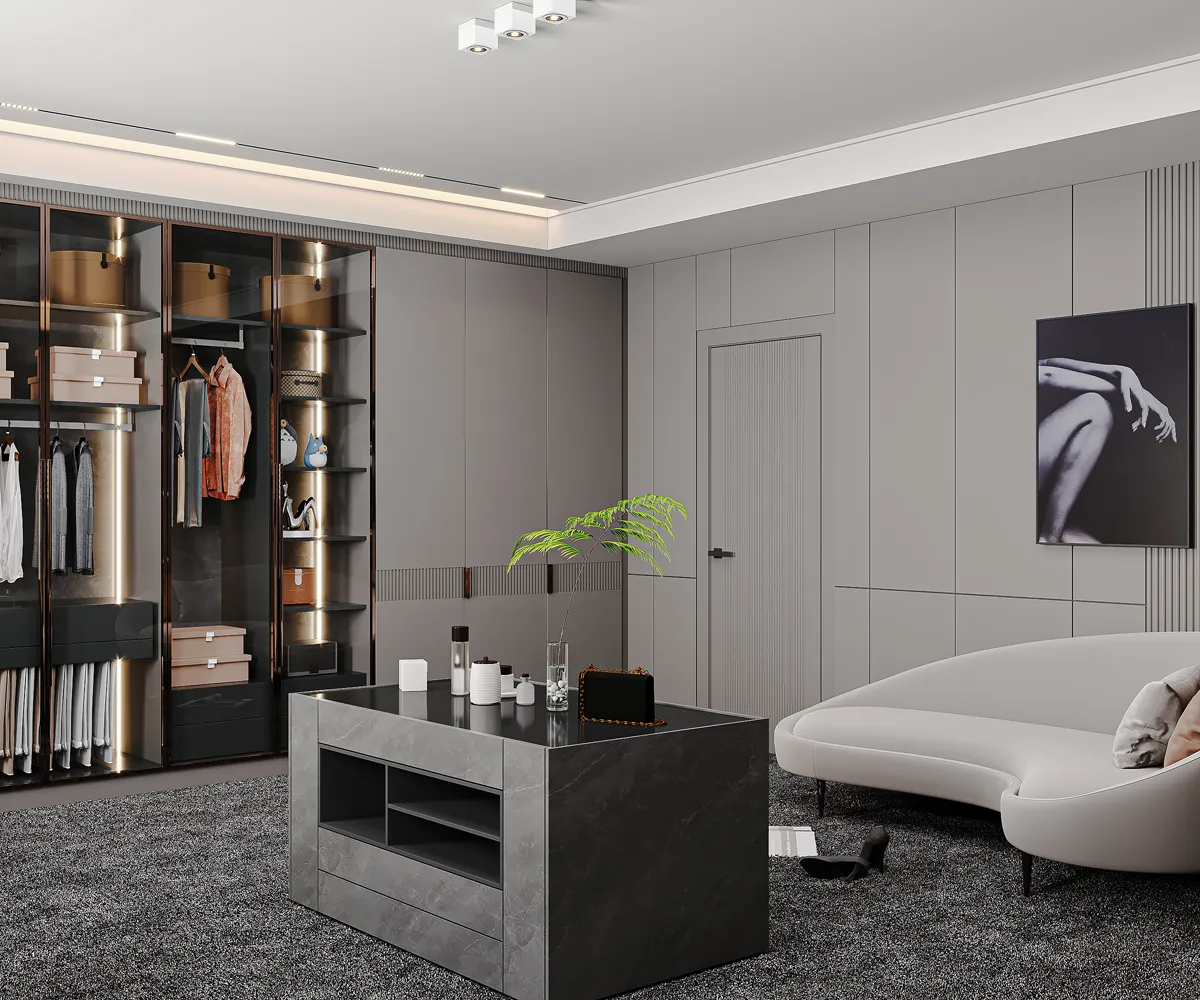 İlsan Mobilya olarak, yarım asırlık üretim tecrübemizi modern yaşamın ihtiyaçlarıyla buluşturduğumuz Giyinme Odası tasarım örneğimizde; estetik, düzen ve maksimum fonksiyonelliği bir araya getiriyoruz.